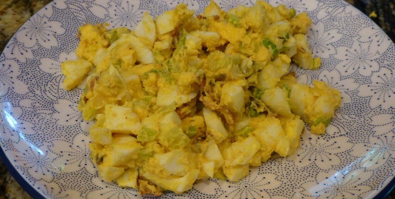 Egg salad is always a good lunch meal to have whether its as a sandwich or on a bed of lettuce. This recipe is really quite good. You can spice it up more than I did but I think it had enough “kick” with what I added.